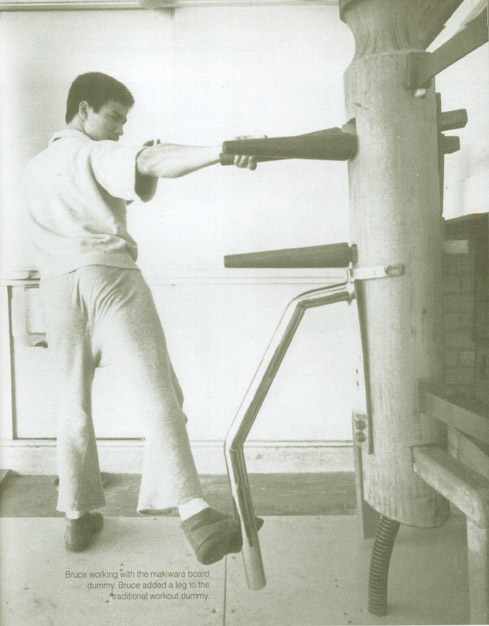 Bruce Lee beim Training an der Holzpuppe (haben wir auch in der Akademie). |